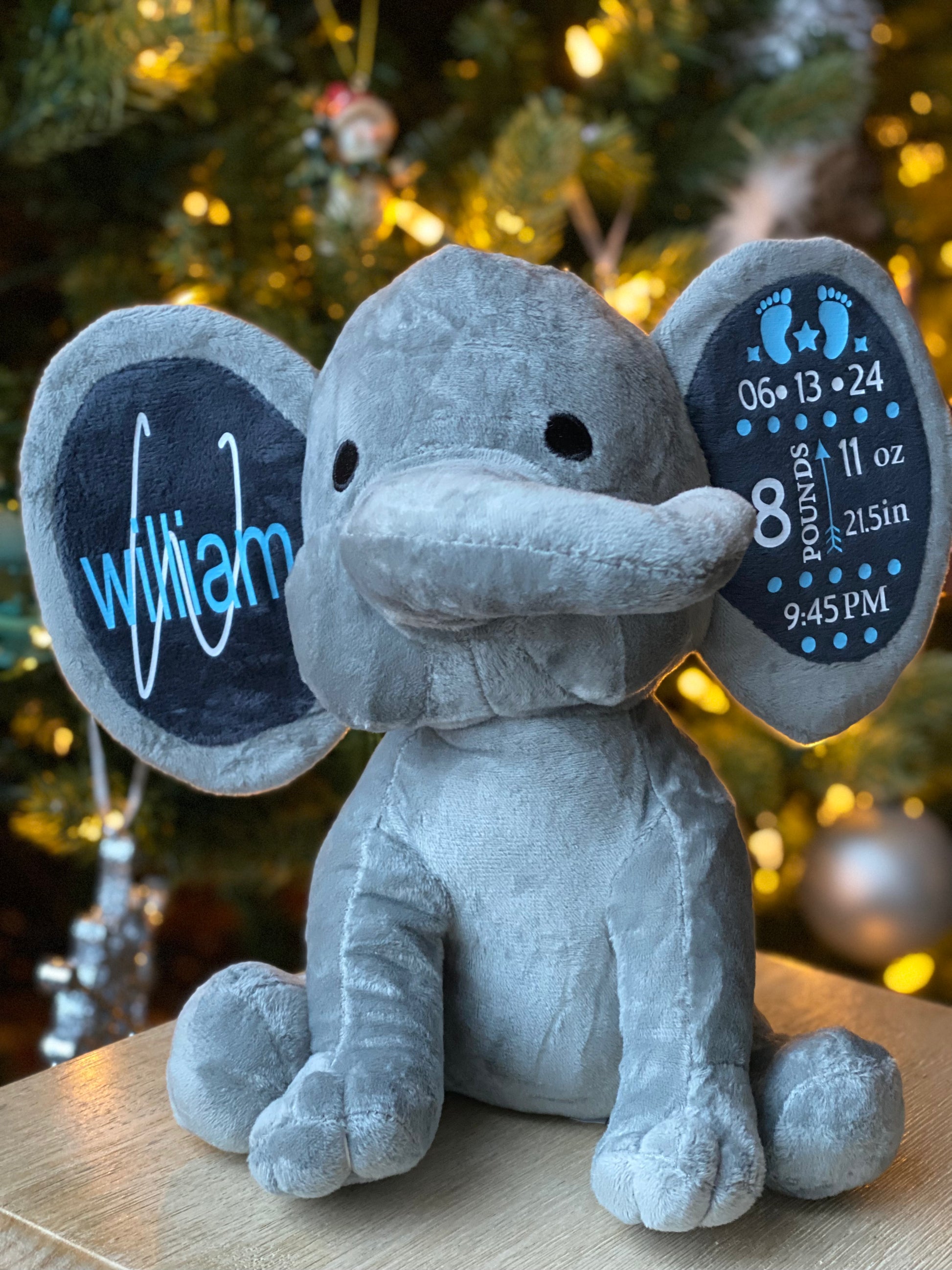 Our grey birth stat elephants make a beautiful one-of-a-kind gift!