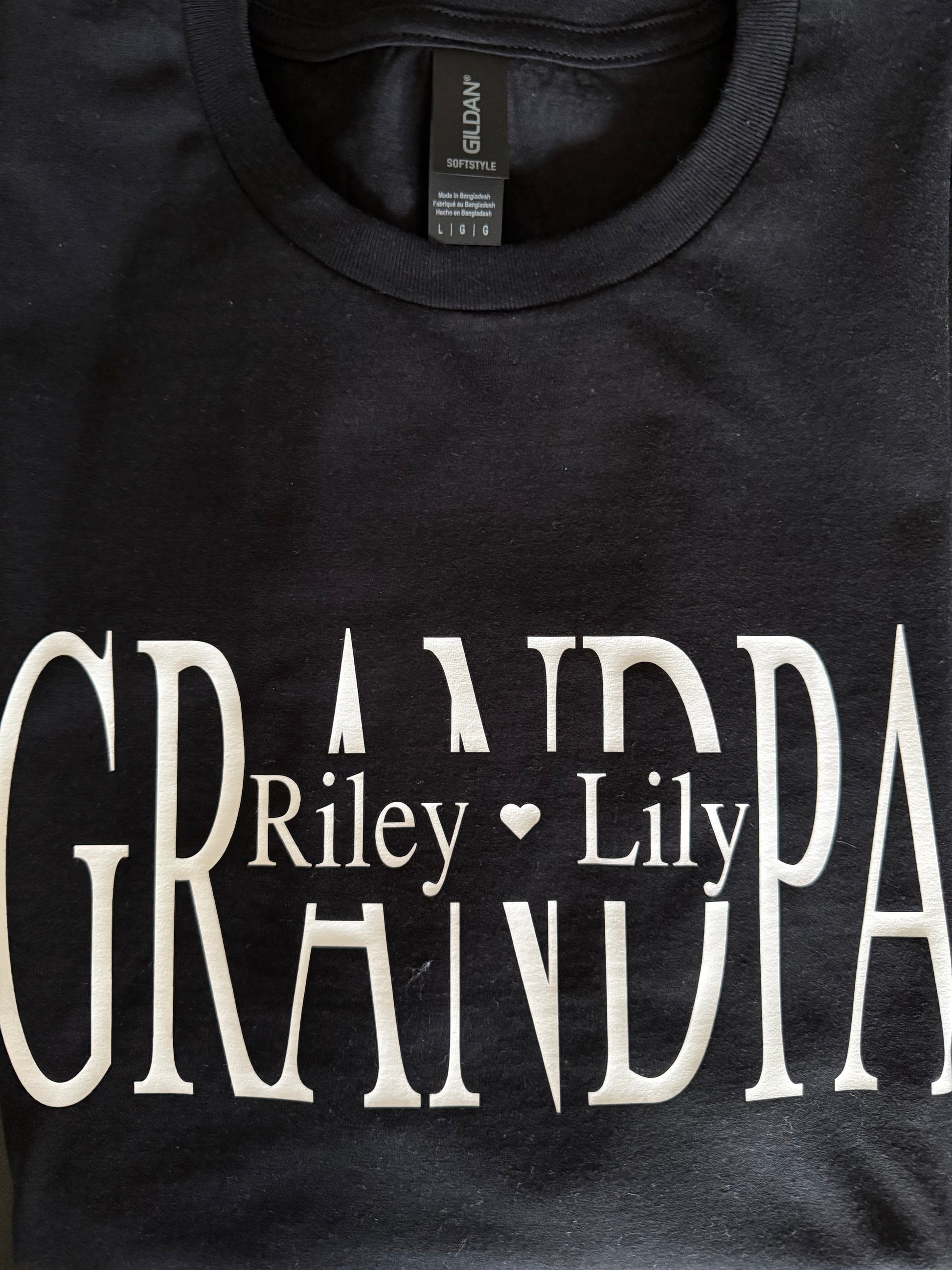 One of our best-loved designs featuring the special title (Grandma, Nana, Baba, Papa, etc.), and all the kids or grandkids names within! There is no limit to the number of names on our best-loved tees!